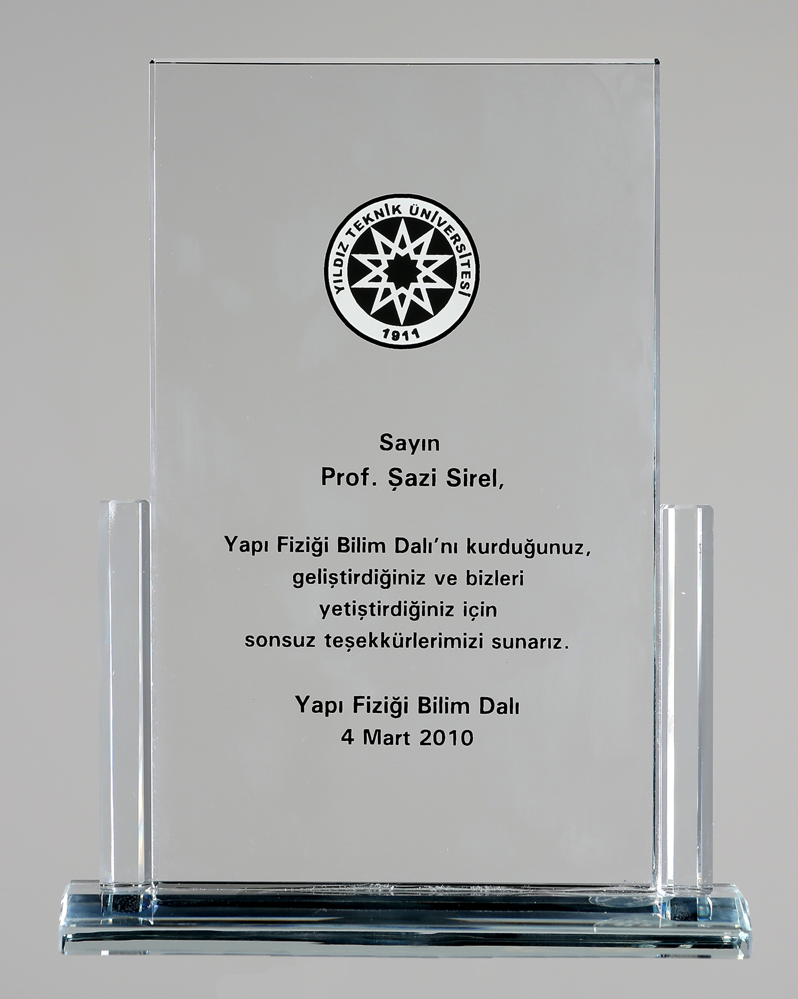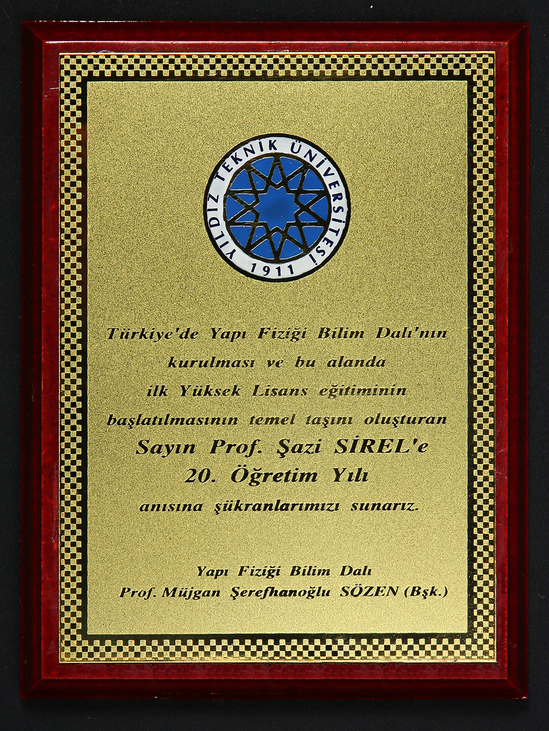Yapı Fiziği Bilim Dalı teşekkür plaketi |