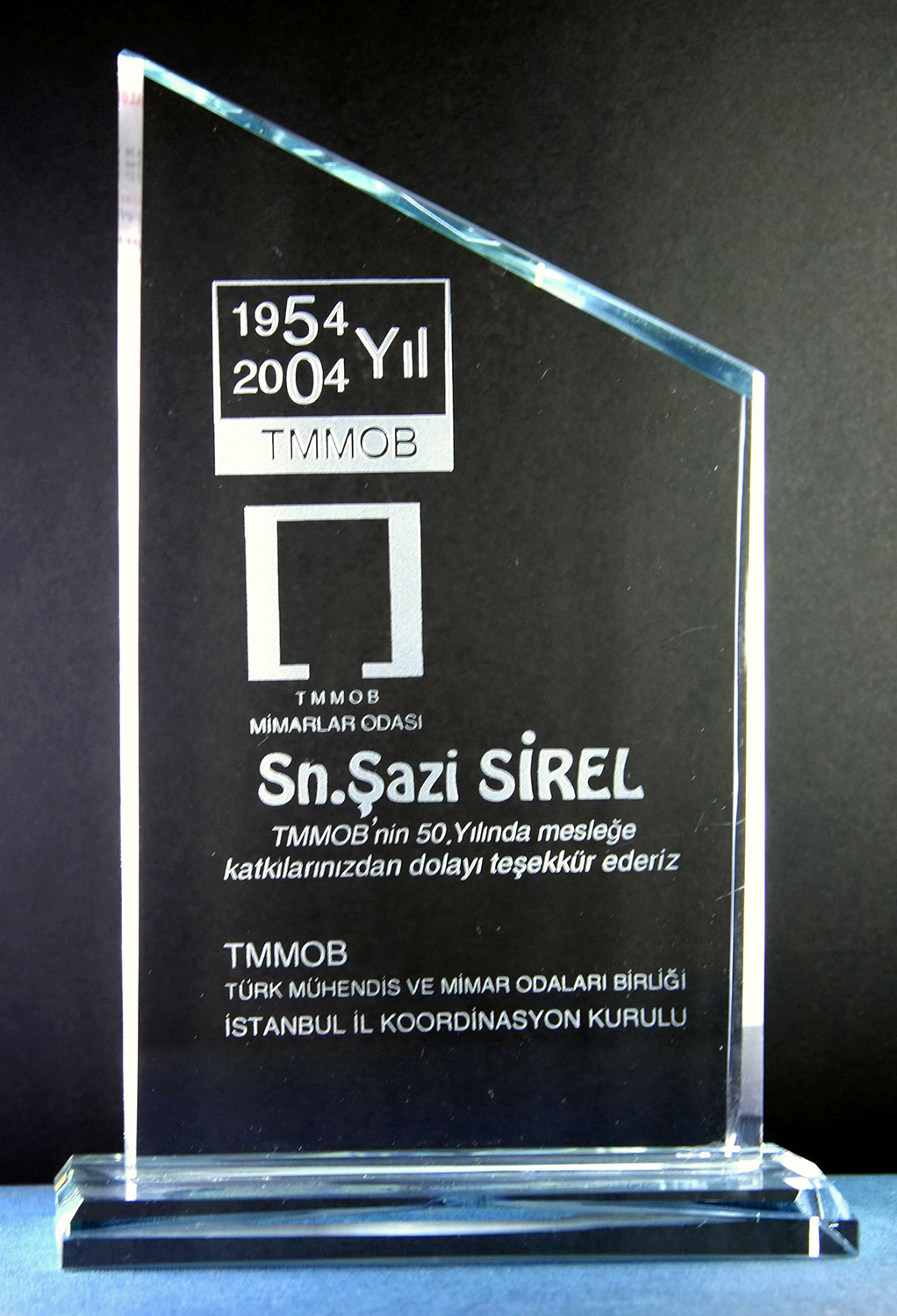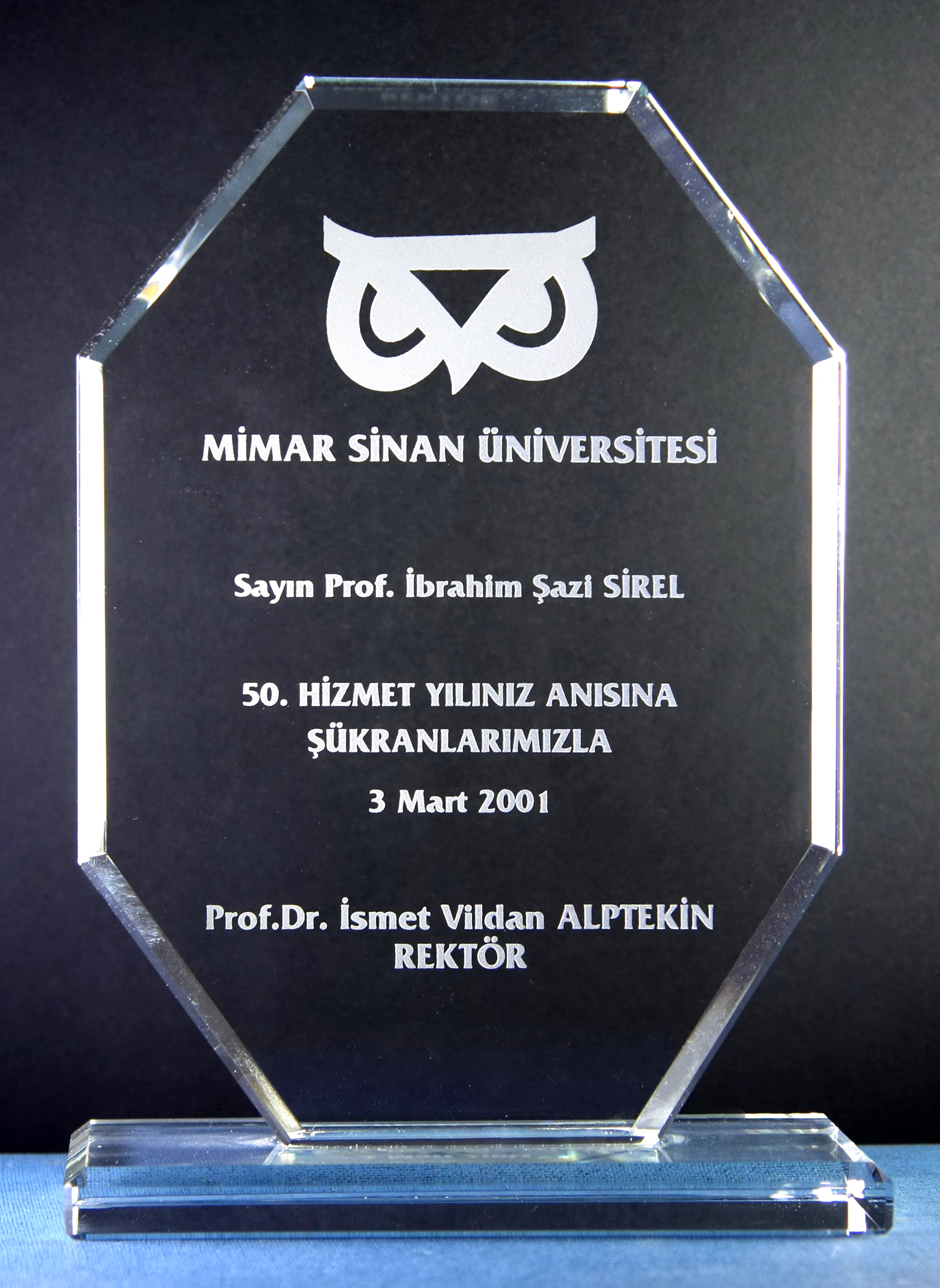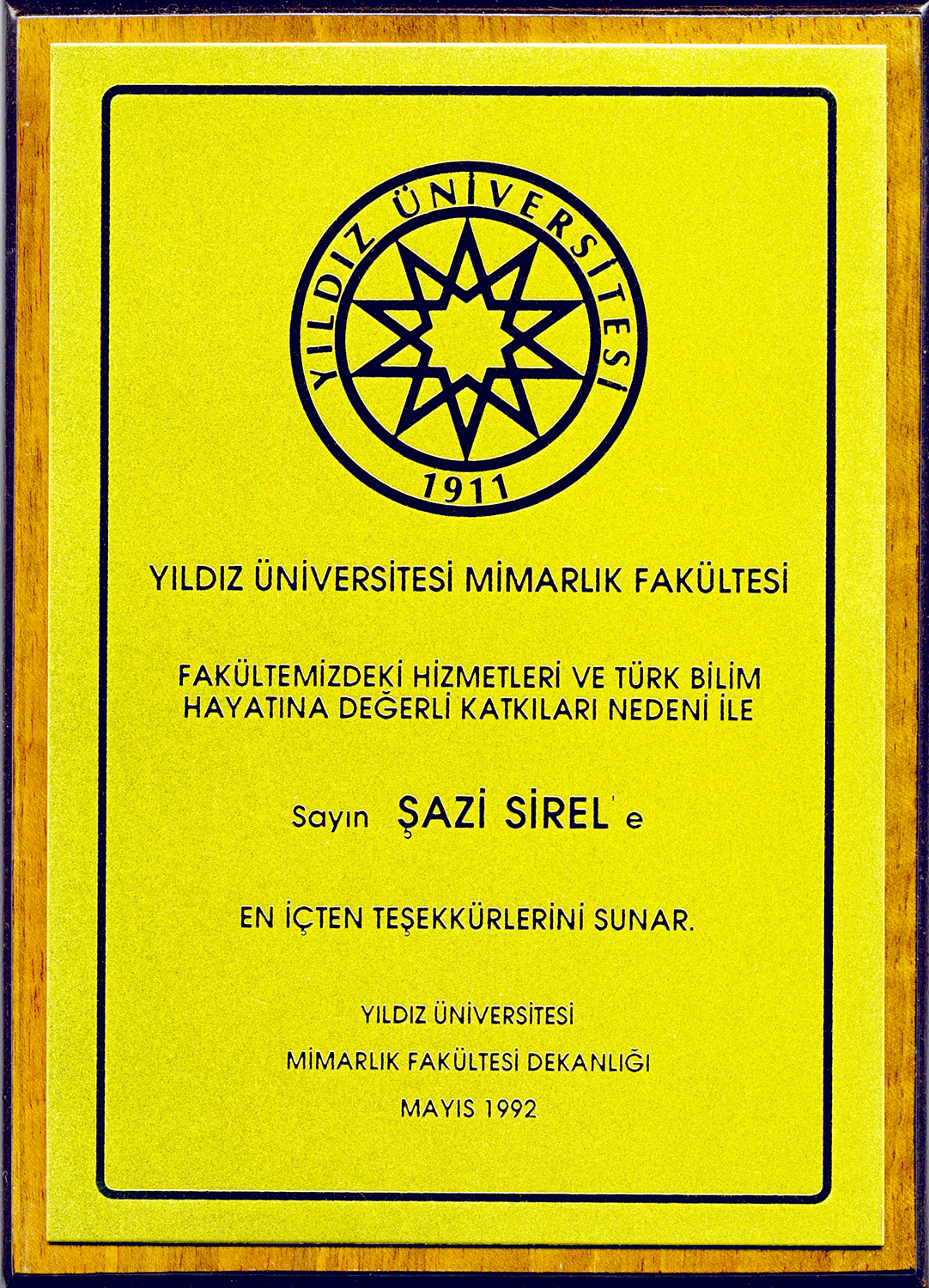 Y.T.Ü. Mimarlık Fakültesi teşekkür plaketi |